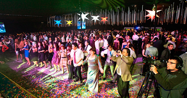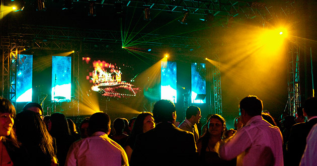 Propuesta creativa. Producción general. Planimetría. Banda, artistas, carpa, escenario, sonido BOSE, iluminación, pantallas Led y proyección. VJ, show y fiesta.