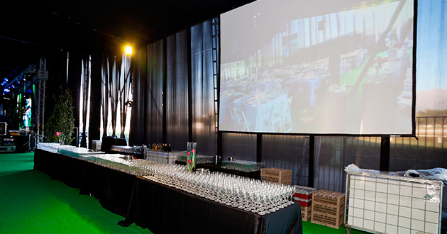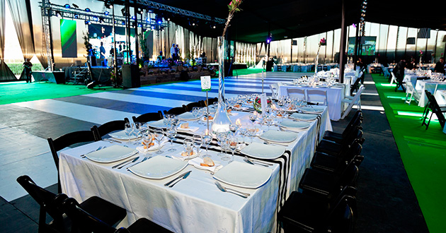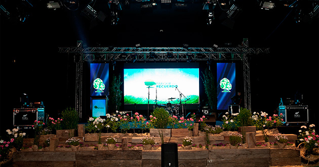 Propuesta creativa. Producción general. Planimetría. Banquetería, banda, artistas, carpa, escenario, sonido BOSE, iluminación, pantallas Led y proyección. VJ, fiesta y show.
