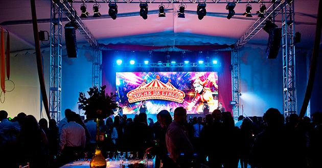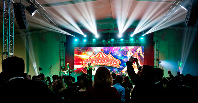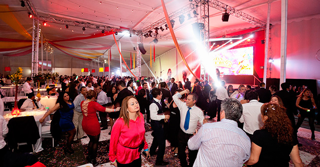 Propuesta creativa. Producción general. Planimetría. Banquetería, banda, artistas, carpa, escenario, sonido BOSE, iluminación, pantallas Led y proyección. VJ, fiesta y show.
