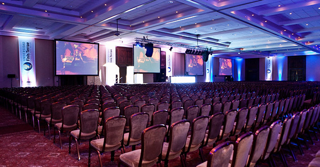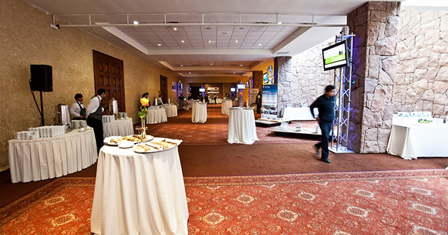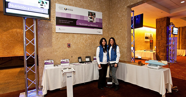 Stand de las 14 carreras, sonido BOSE, iluminación, podio digital, pantallas Led y de proyección.